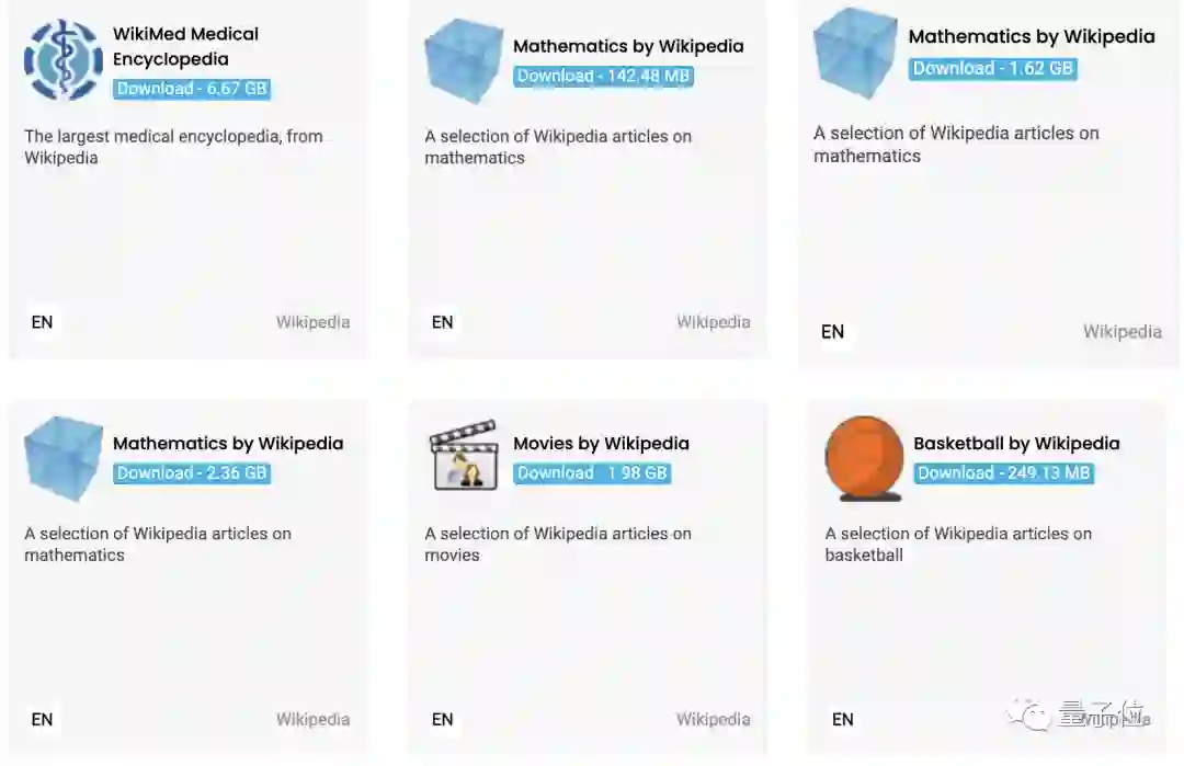 值得一提的是,在Kiwix给出的资料库中,除了整个维基百科库之外,还有按照单独分类好的维基百科资料,比如医疗、数学、电影等等。