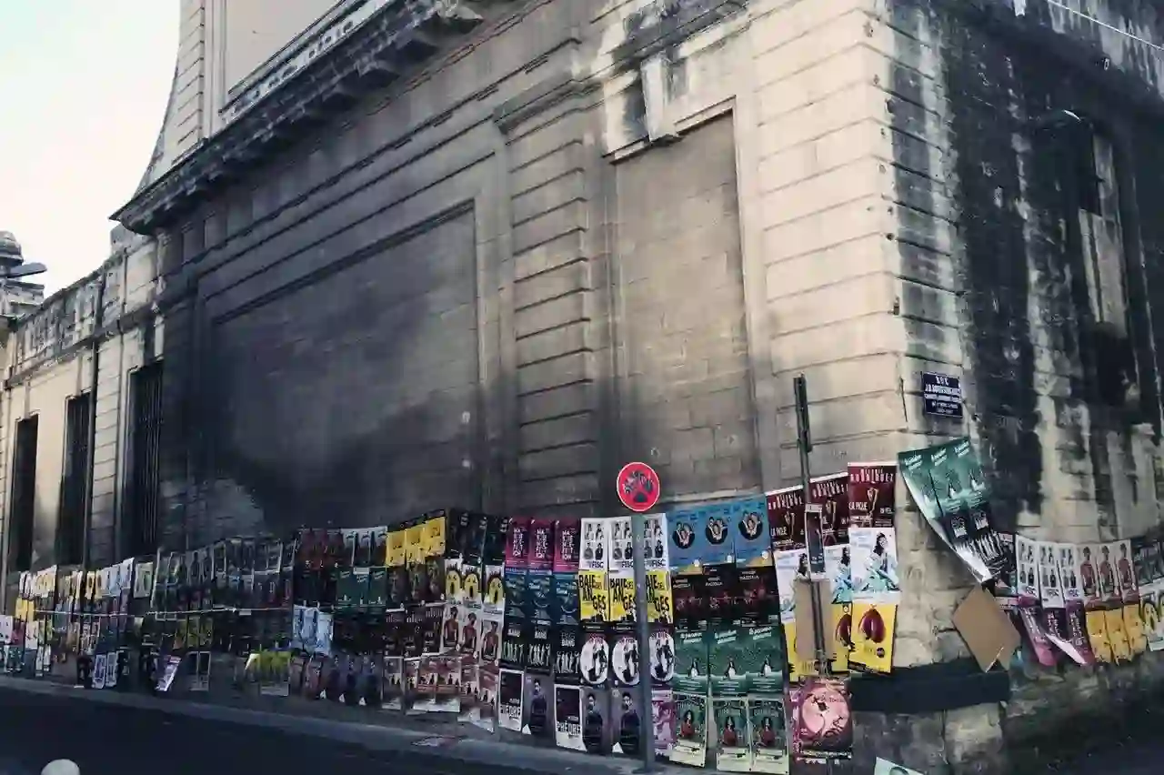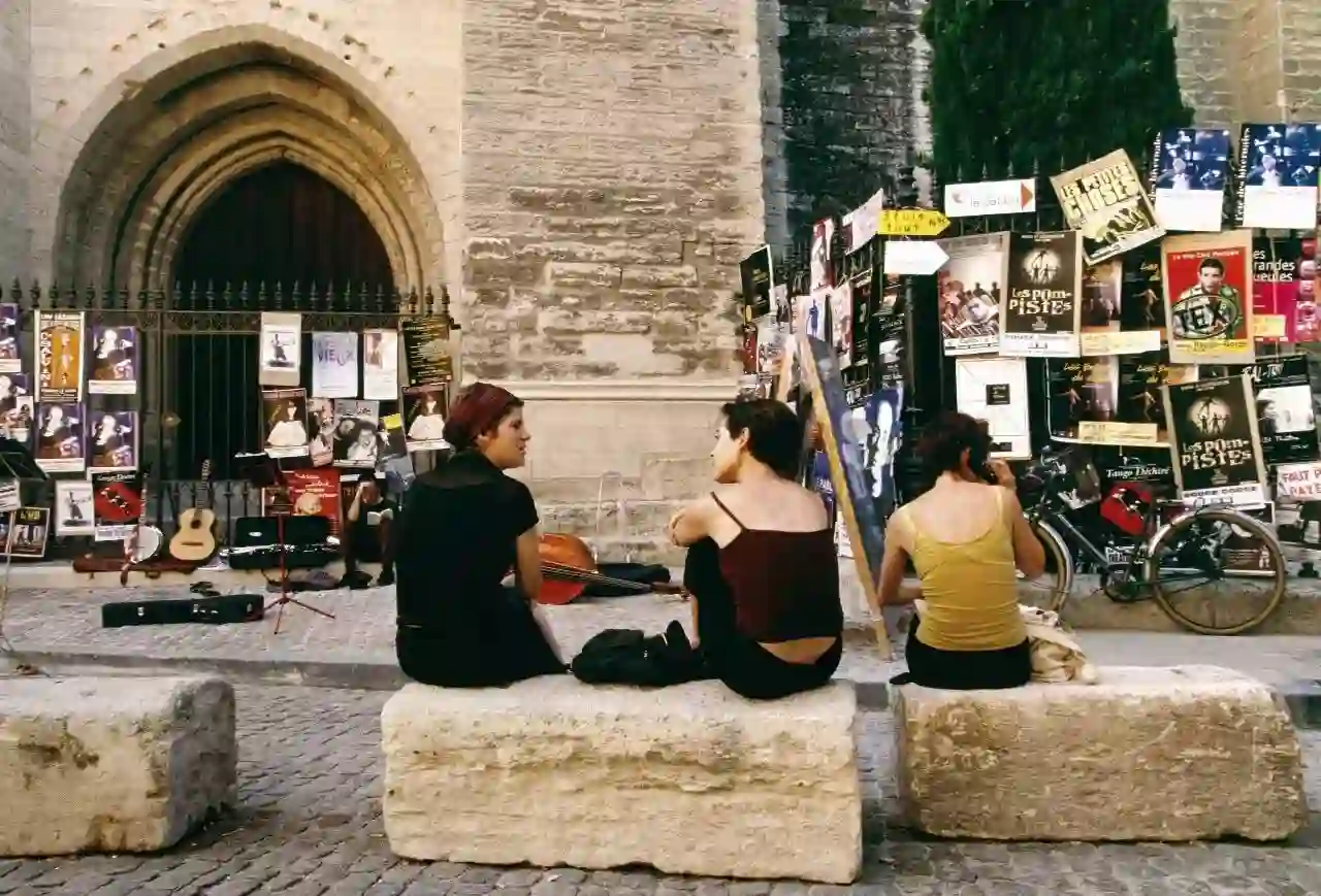 法国阿维尼翁教皇宫外的各式戏剧节海报