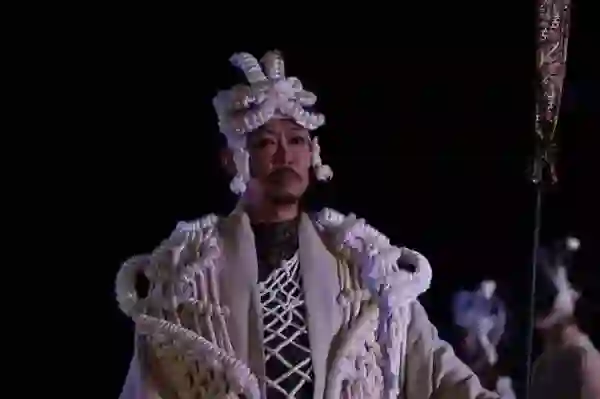 午夜时分,我偶尔抬头,看天空中月亮逐渐旁移,发现它从舞台左侧逐渐转到中央,在这轮朗朗圆月之下,有2000人在屏息。而宫城聪将古希腊和传统日本结合的双重美学——以教皇宫外墙为幕,人工搭建水域——这种庄严,还是让我想起几个小时前奥利维尔·皮宣布戏剧节开幕的随兴。