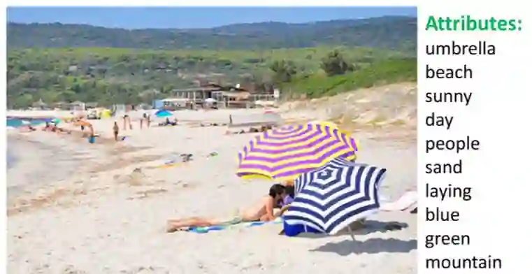 测试集图像的属性的生成:可以看成是一个多标签分类问题,建立每个属性与图像的区域的对应关系。 如一张图片上有“草地”“狗”“球”等,哪些地方是草地,哪些地方是狗等等。