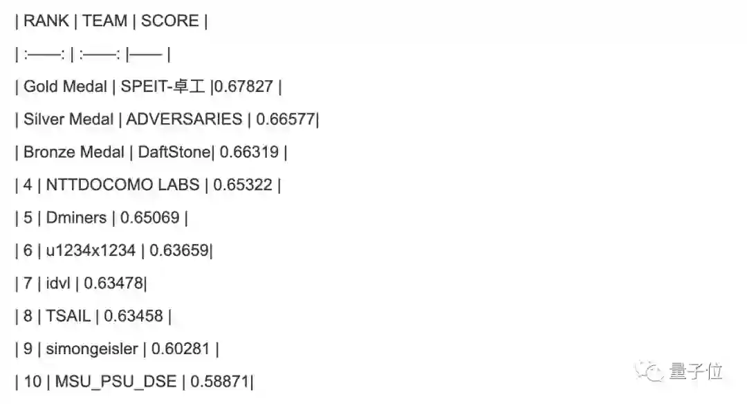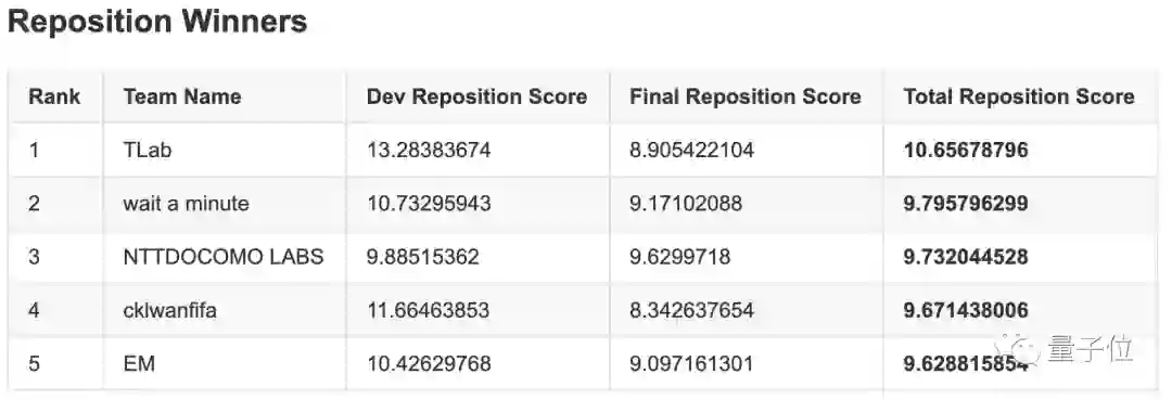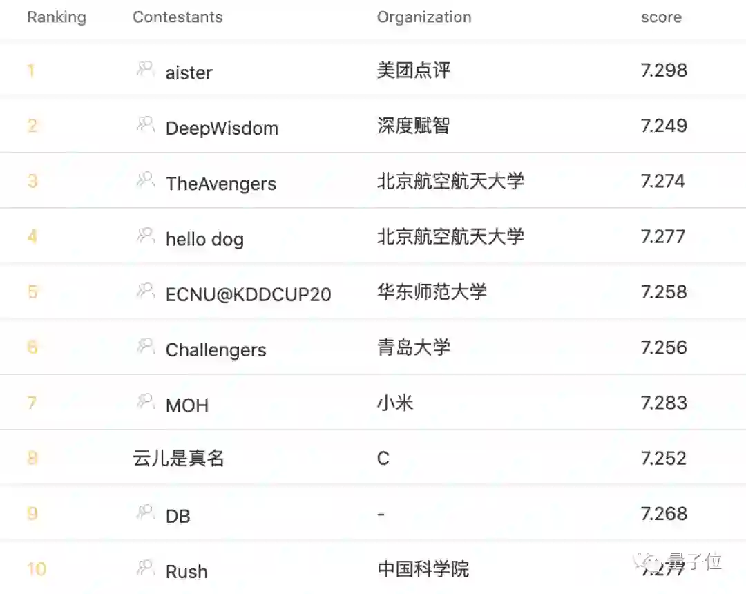 最终冠军由来自美团点评、中国科学院大学和清华大学(aister)的团队获得,亚军为南京大学(PASA_NJU)的团队,至于季军团队,则来自蚂蚁金服(qqerret)。