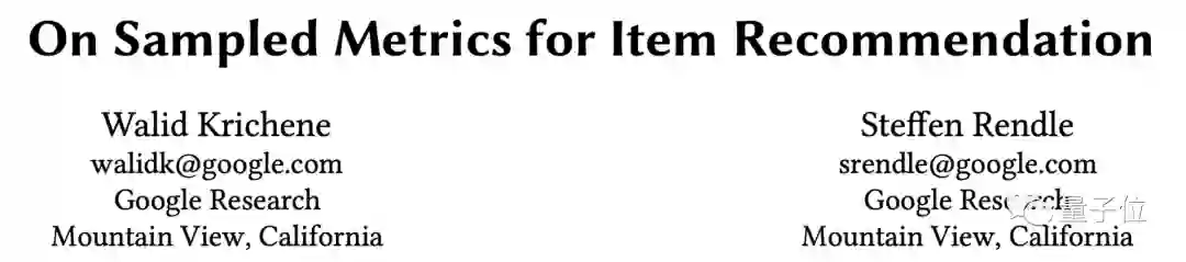 今年最佳论文奖由来自谷歌研究院的Walid Krichene和Steffen Rendle获得。
