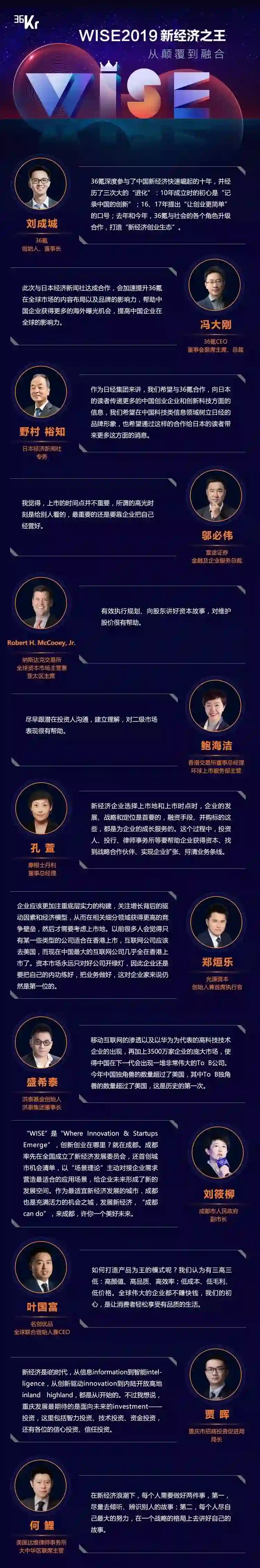 附26日WISE2019新经济峰会大咖金句: