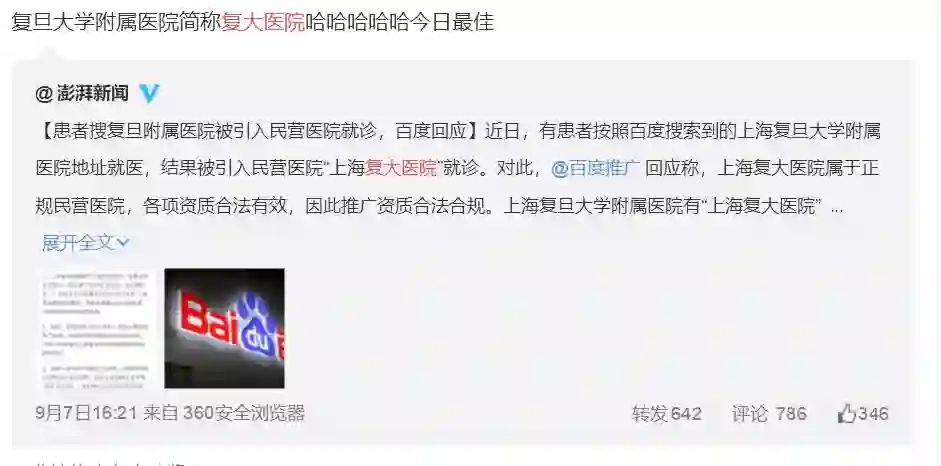 5.百度回应“复大医院”事件:确实误导了网民的就医选择