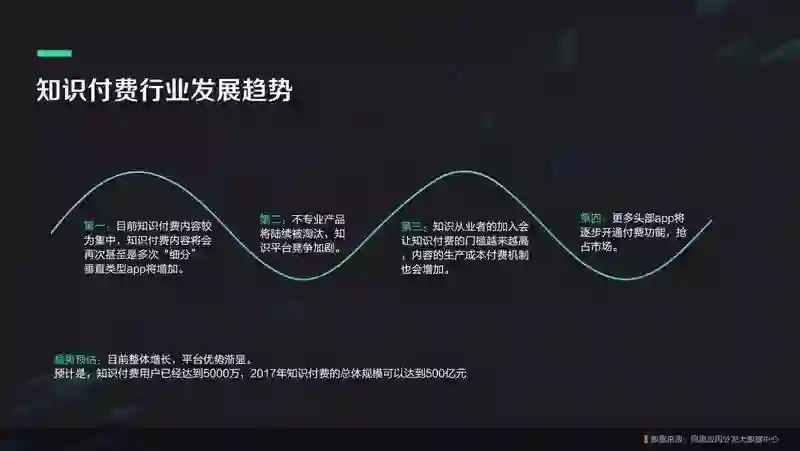 根据这份行业报告的预计,目前知识付费用户已达到5000万,2017年知识付费的总体市场规模将可达到500亿元。