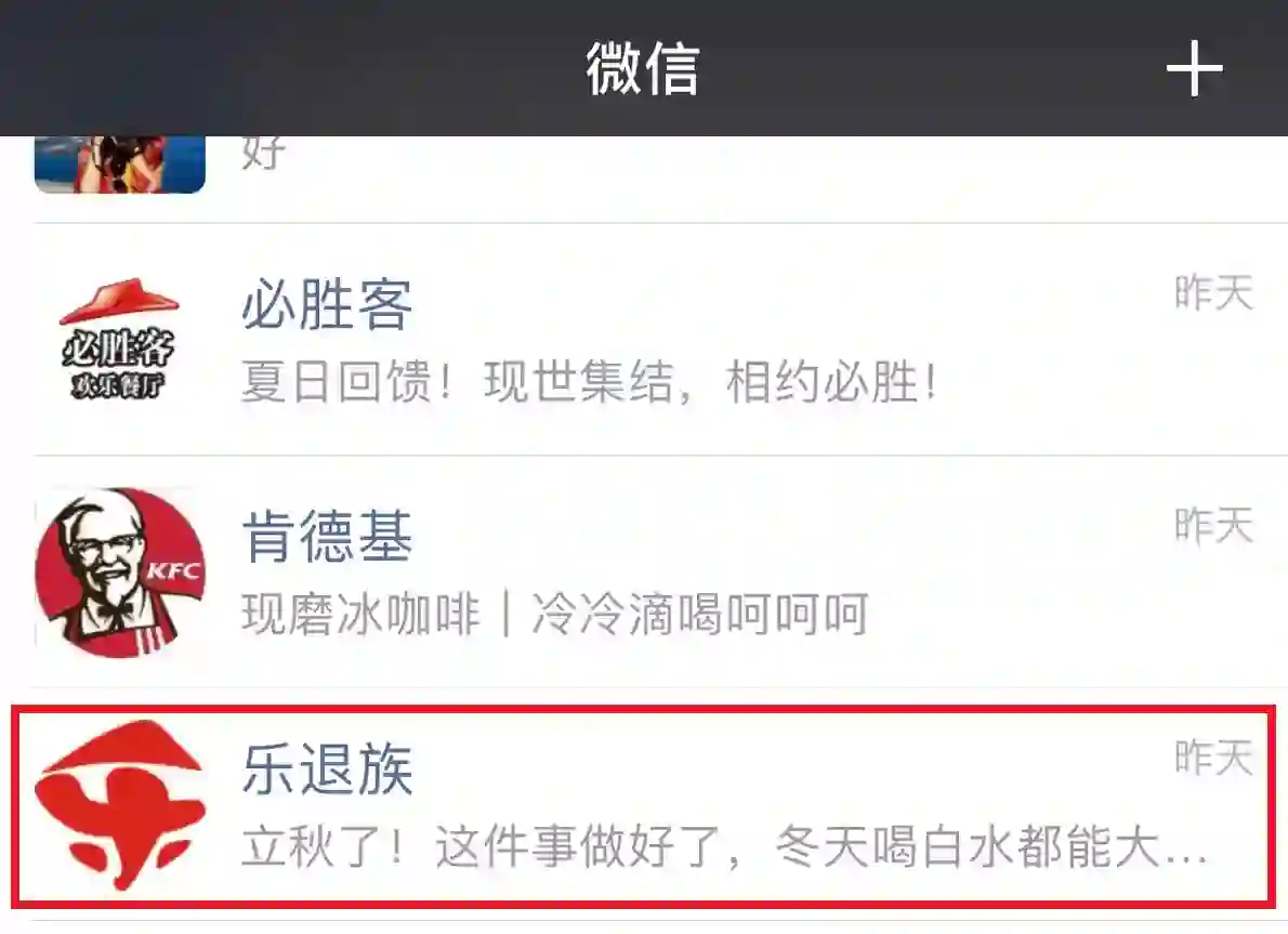 新榜讯 今天有用户向榜妹爆料,订阅号“乐退族”突然从订阅号列表跳到了聊天页面。该用户的微信是iOS的6.5.13版本。目前尚不清楚是系统bug还是新功能测试。
