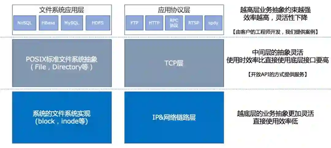问题是我们必须时刻知道,目前我们在不同层次的这些模块存在哪些问题,以及不同层次在解决什么问题。比如说上述的操作系统中文件系统和协议分层中,最底层的是跟硬件打交道,能够精准的控制硬件,中间是对操作系统的用户暴露的,更简单易用,上层是针对应用来使用,解决特定领域的问题,不同的层次做了不同的抽象,也是在解决不同的问题。
