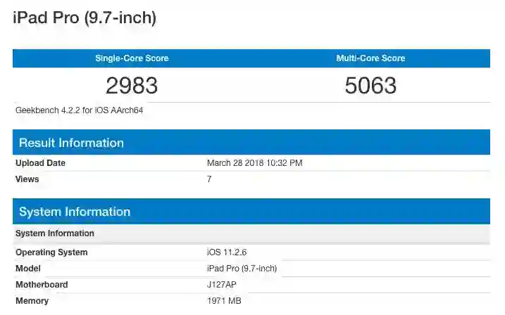 (iPad 2018 在 GeekBench 上的跑分)