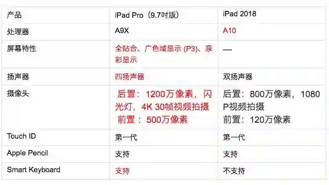 iPad 2018 国行版的售价为 2588 元,iPad Pro(9.7 吋)在苹果官网已经下架,某宝上未激活国行版价格在 3000 元左右,美版则在 2500 元左右。