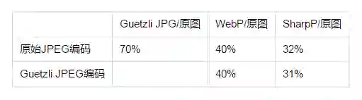 Guetzli编码后的图片还是JPEG格式,理论上再次进行WebP/SharpP压缩是可行的,现网实际测试也的确如此。那么Guetzli是否会和分辨率自适应一样,在与WebP/SharpP叠加编码后,压缩效率和性能收益同样叠加?