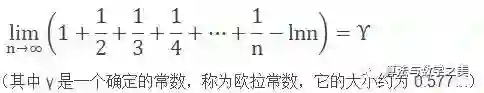所谓调和级数,即1+1/2+1/3+1/4+…+1/n+...。它是一个发散级数,当n趋于无穷大的时候,这个和也将趋于无穷大。但是同样是发散的级数,发散也有快慢之分。调和级数发散速度是怎样的呢?伟大的欧拉发现的一个著名极限给出了答案:
