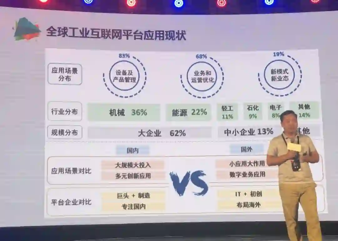基于这些案例,我们看到所谓的基于平台的工业企业的应用案例或者数字化转型案例里面,83%的案例都在做的是产品和设备的在线管理,有68%是在做业务运营的优化,19%在做新模式、新业态。