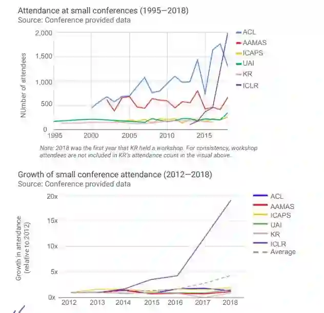 与此同时,专注符号推理(symbolic reasoning)的大型顶会的增长率相对较小。
