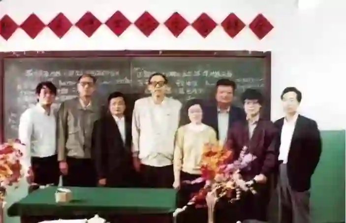 1993 年博士论文答辩会(左起:展涛,潘承彪,裴定一,潘承洞,王小云,袁益让,王炜,于秀源)(图源:《数学文化》)