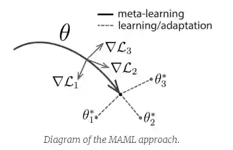 需要找到能够根据少量样本高效地进行微调的表征,那么有没有可能直接对初始表征做优化呢?这是伯克利AI研究所最近提出的未知模型元学习法(MAML)背后的想法。和其他元学习法一样,MAML能在大量不同的任务上训练,通过少量的梯度步骤,能快速得到适应新任务的表征。