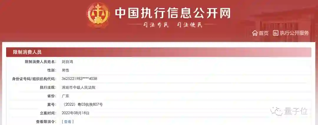 据中国执行信息公开网消息,深圳市柔宇科技股份有限公司及其子公司深圳柔宇显示技术有限公司新增限制消费令,两公司的法定代表人刘自鸿也被列为限制消费人员。