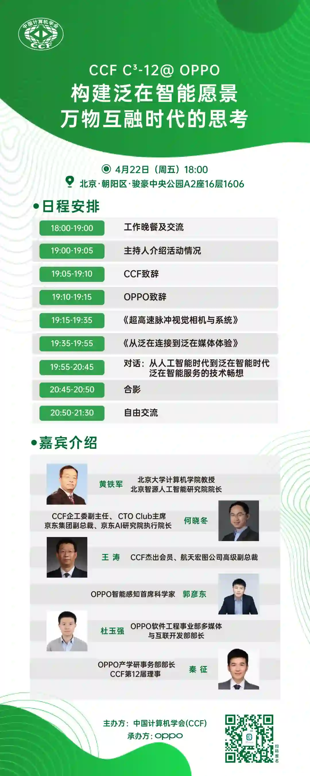 扫描下方二维码,报名参会。线下活动需在预报名后,得到CCF审核通过后获邀参加。