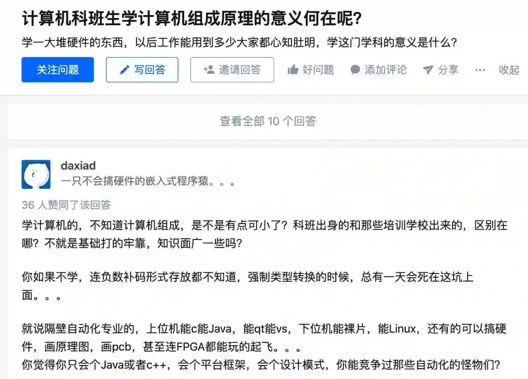 说白了,就是基本功出了问题。这也是为什么,很多人在工作两年后,反而回去补组成原理这些专业课知识。