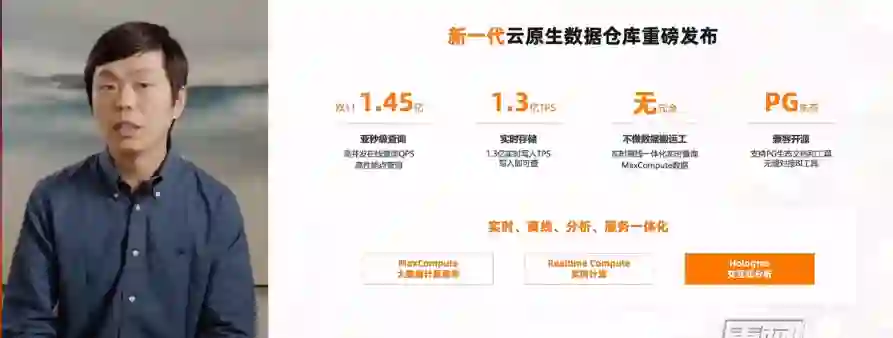 贾扬清表示,在阿里双11当天,有大量的数据流转和复杂的业务决策。通过Hologres和MaxCompute的数仓给业务系统做了一次升级,在2019年双11当天这套系统支持共1.45亿次的在线查询。