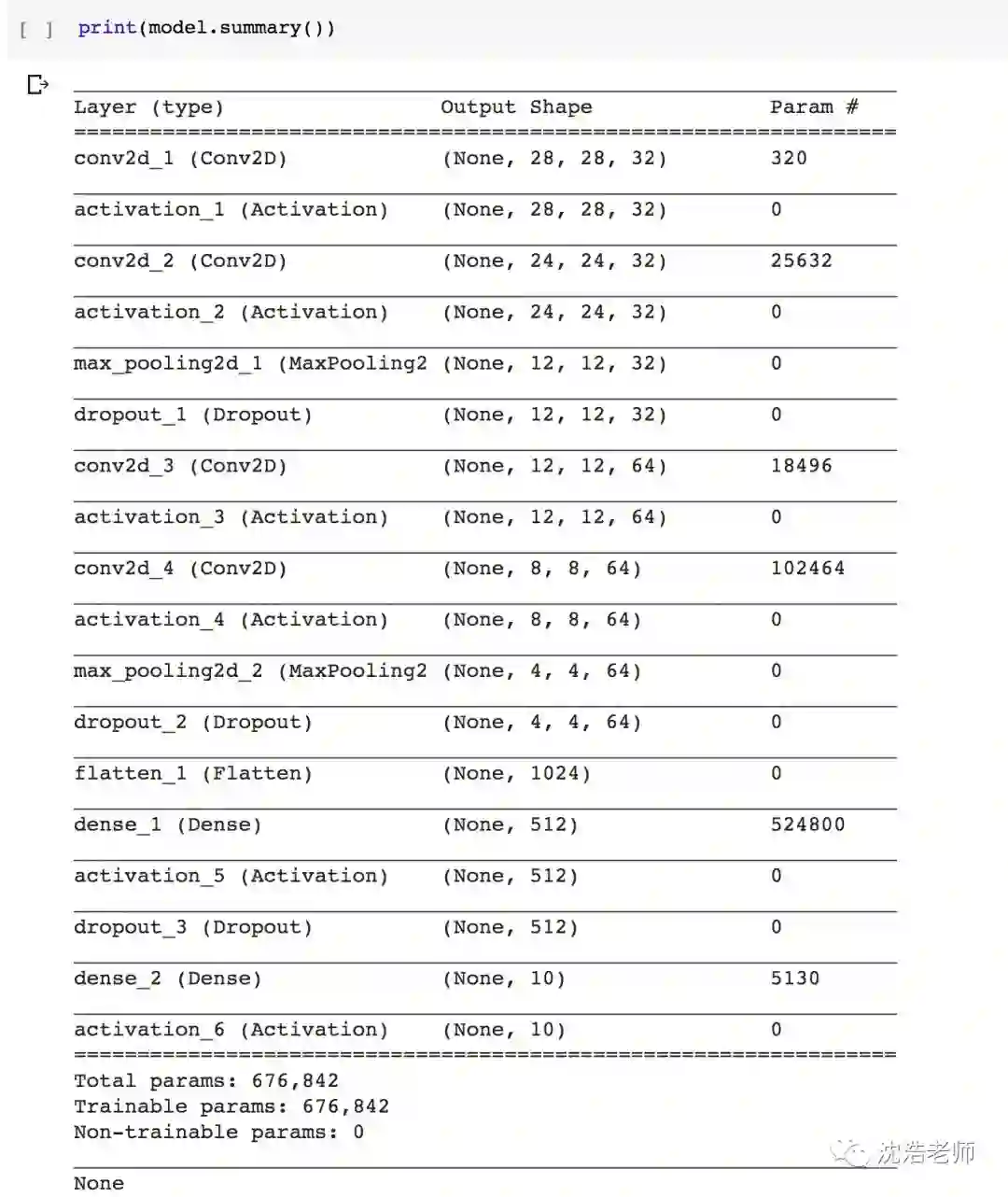 输出模型Summary