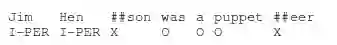 为了微调,我们将最后一层每个单词的隐藏表示 Ti∈RHTi∈RH 送入一个在 NER 标签集合的分类层。每个单词的分类不以周围预测为条件(换句话说,没有自回归和没有 CRF)。为了与词块(WordPiece)序列化相适应,我们把 CoNLI-序列化的(CoNLL-tokenized)的输入词输入我们的 WordPiece 序列化器,然后使用这些隐藏状态相对应的第一个块而不用预测标记为 X的块。例如: