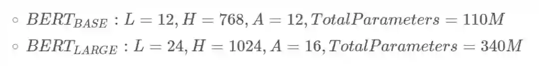 在这项工作中,我们表示层的数量(即,Transformer 块)为 LL,隐藏尺寸为 HH,自注意头的个数为 AA。在所有例子中,我们将前馈/过滤器的大小设置为 4H4H,即当 H=768H=768 时是 30723072;当 H=1024H=1024 是 40964096。我们主要分析两个模型大小的结果: