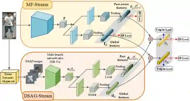 我们通过两路联合学习框架,学习密集语义对齐的全局和局部行人特征表达。