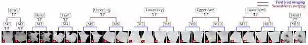 我们知道,用于表征全局信息的全局特征(Global feature),以及可以保留更多局部信息的局部特征(Local features)对于行人重识别都有重要的意义。因此,在两路中,均设计了局部分支和全局分支并在各类分支中进行两路特征的融合以实现交互。DSAG-Stream在特征提取的过程中分两个阶段进行特征融合,以提高特征表达的鲁棒性和减少网络的大小。在第一阶段,我们将对应人体左右对称的语义部件图像的特征表达进行融合;在第二阶段,我们将具有相似语义的部件的特征进行融合。最终得到一个全局特征表达和8个具有特定语义的局部特征表达。