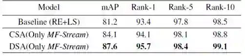 为了验证DSA-reID模型的有效性,我们对其进行了相关的消融实验和对比实验。