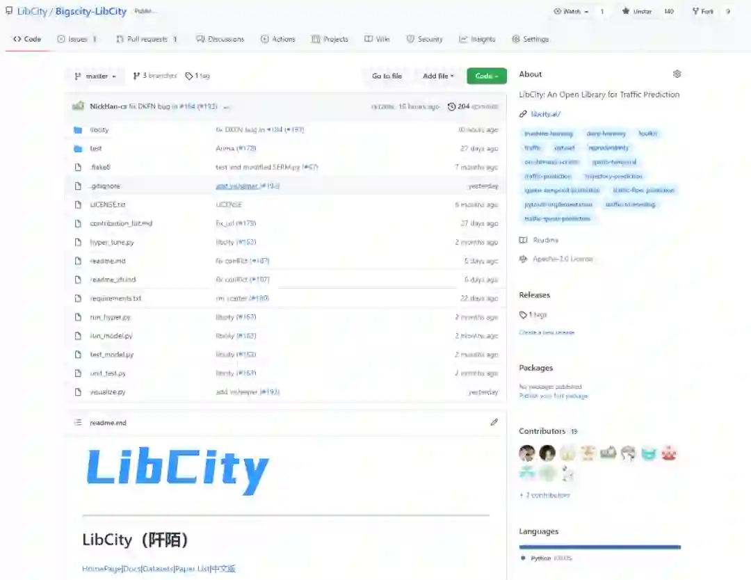 针对交通预测, 我们构建了统一、全面、可拓展的全流程算法库和数据集库——LibCity。目前,LibCity 已经在 Github 开源,开源代码仓库地址为: