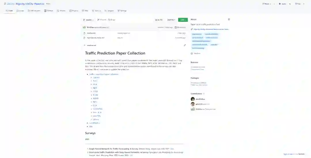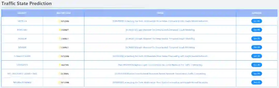 目前交通预测领域的研究成果已经非常丰富,我们总结了近 5 年 11 个顶级期刊会议(KDD, AAAI, ICLR, IEEE TKDE 等等)上交通预测领域的论文,得到一个 PaperList,包含 14 篇综述,351 篇论文,具体内容见地址: