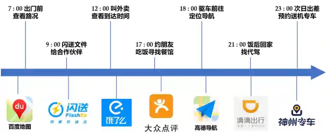 回顾我们的个人生活,你会发现我们每个人的日常生活都离不开交通大数据,下图中展示了一个人一天的生活的例子。这些生活中常用的 APP 的技术中,离不开的就是交通预测的相关任务,例如交通状况预测、POI 推荐、需求调度与预测、出行时间预测等等。