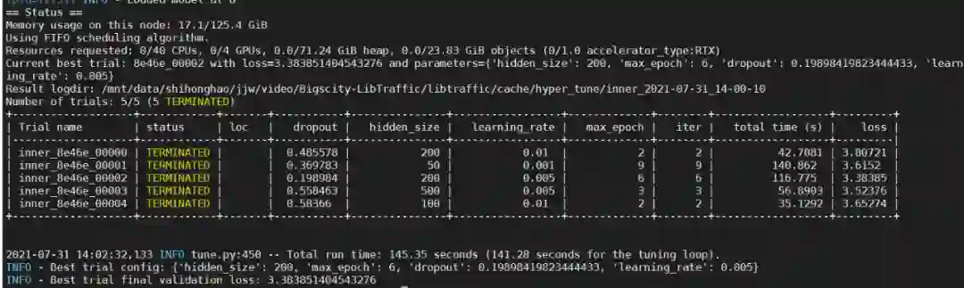 基于 Ray Tune 第三方库扩展实现。 用户仅需在命令行指定需搜索的参数名及其搜索算法与范围。