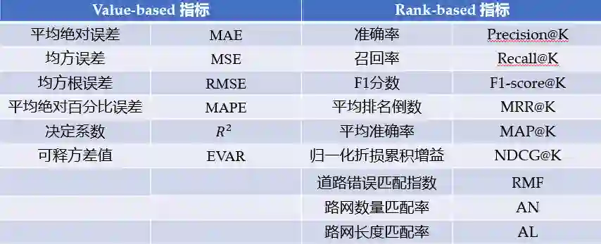(2)Rank-based 指标:用于分类任务的评估,如轨迹位置预测等。
