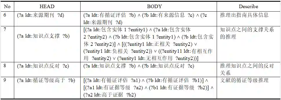 表3 可循证知识推理规则