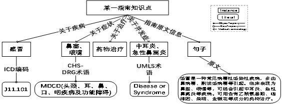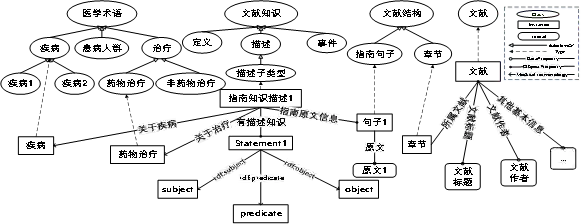 知识图谱及相关技术的出现为领域知识的结构化提供了全新手段,该技术现已经运用到医疗、教育等领域。如国际疾病分类(International Classification of diseases ,ICD)系统、统一医学语言系统(Unified Medical Language System,UMLS)等,但这些资源主要关注临床术语体系构建,未能对医学文档中除概念树以外的知识内容、知识结构及其内在关联的细粒度医学知识进行表达。
