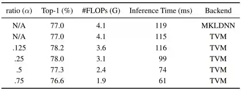 表 2:ResNet-50 的实测时间开销(Inference time)以 2.0 GHz(单线程)在英特尔 Skylake CPU 上进行测量。