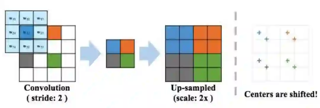 图 3:采用卷积降采样后的特征图,在进一步上采样后,将导致整体向右下方漂移,影响特征融合。