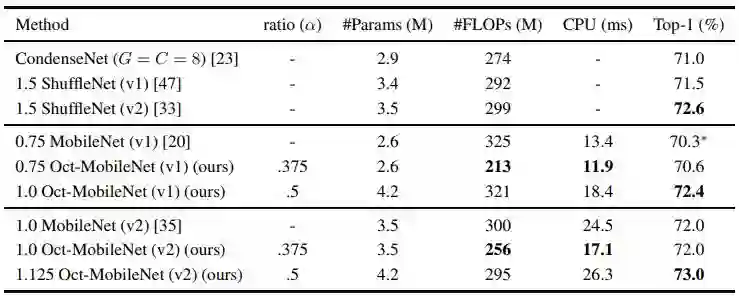 在本文中,研究人员提出基于频率对混合特征图进行分解,并设计了一种新的 Octave 卷积(OctConv)操作,以存储和处理较低空间分辨率下空间变化「较慢」的特征图,从而降低内存和计算成本。