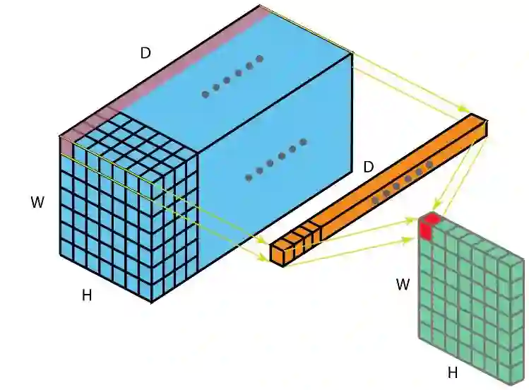 对于一个卷积操作而言(图 1),每个位置都是由一个 D 维特征向量 表示,而特征提取,则是通过滑动卷积,对每个位置分别处理得到对应的特征。