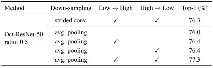 表 3:下采样的控制变量实验和 ImageNet 上的 inter-octave 连通性。