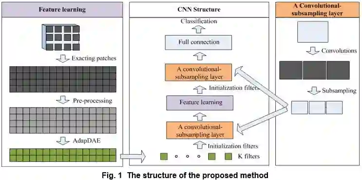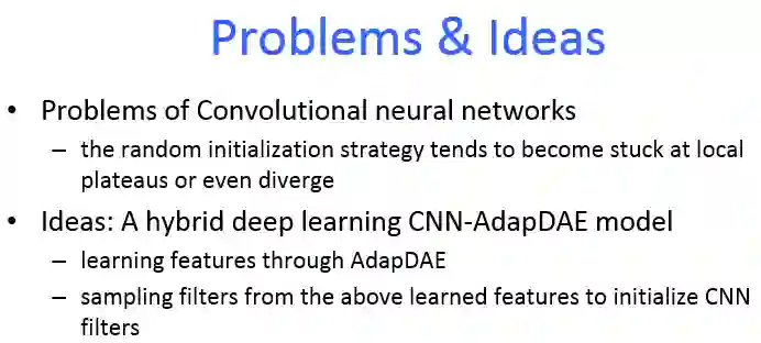 卷积神经网络是一种典型的深度学习架构,并广泛应用于图像识别和分类等领域。然而,随机初始化参数容易使算法陷入局部最优甚至发散,导致实际应用中效果并不理想。为了解决该问题,本文提出一种混合深度学习模型,卷积自适应降噪自动编码器(CNN-AdapDAE)。该模型将自适应降噪自动编码器(Adaptive Denoising Autoencoder, AdapDAE)学习的特征用于初始化卷积神经网络的滤波器,再对经过改进的卷积神经网络进行分类任务训练。在该模型中,AdapDAE算法作为卷积神经网络的预训练过程被提出,其基于退火原理自适应地获得噪声级别,噪声级别开始较高,随着训练的进行而逐渐降低。因此,采用AdapDAE算法学习到的特征包括不同粒度级别的特征的组合。在STL-10,CIFAR-10和MNIST数据集上的广泛实验结果表明,提出的算法优于采用随机初始化策略的卷积神经网络CNN(Random filters)、采用自动编码器预训练的卷积神经网络(CNN-AE)和其它一些特征学习方法。