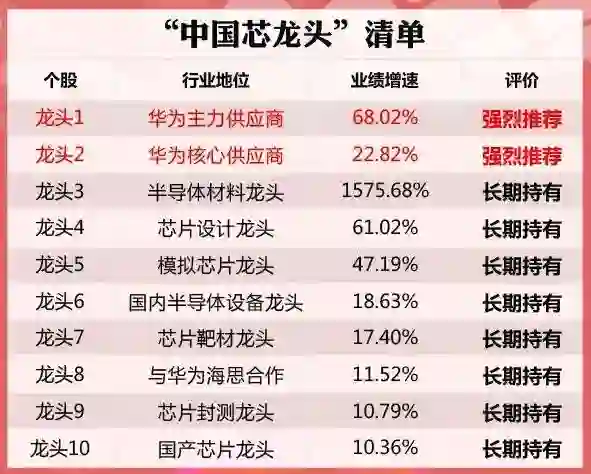 10家芯片龙头