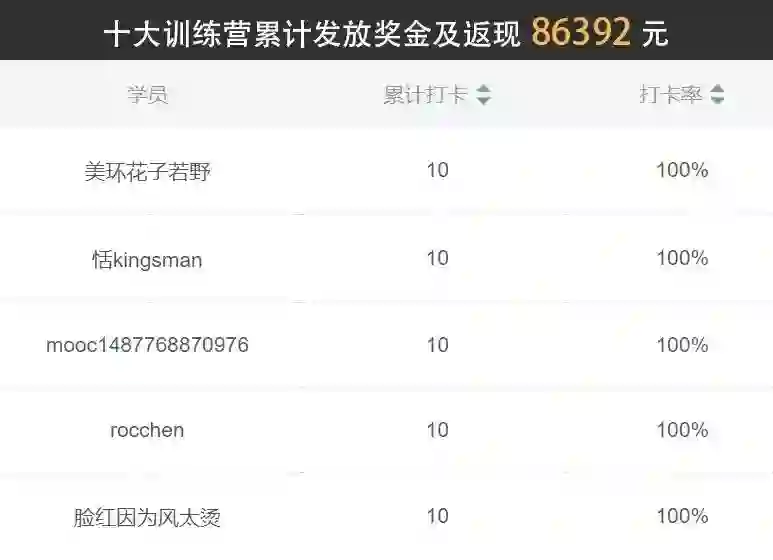 事实证明,往期训练营结束后,每一期坚持打卡的人,都拿回了报名时他所付的金额