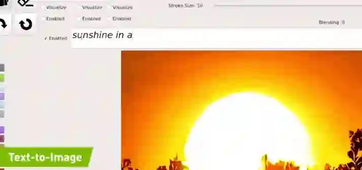 上述几种模式也可以混合叠加使用,例如在用涂鸦绘画等生成图像后,输入文本进行相应的修改,下图就生成了一座阳光下的「空中楼阁」:
