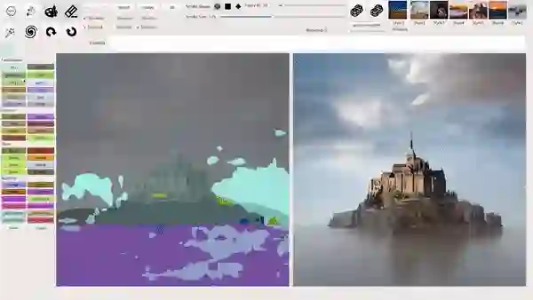 从 2019 年开始,英伟达开始改进 GauGAN 系统,该系统由超过一百万个公共 Flickr 图像训练而成。与 GauGAN 一样,GauGAN2 可以理解雪、树、水、花、灌木、丘陵和山脉等物体之间的关系,例如降水类型随季节变化的事实。