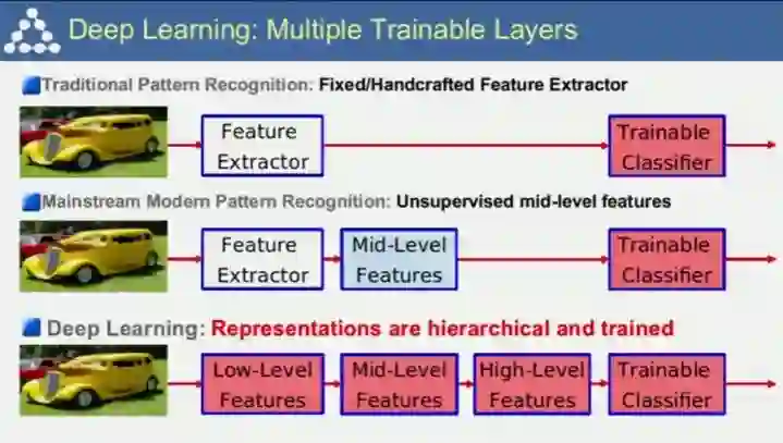 Lecun还比较了传统的模式识别方法、改进的模式识别方法、深度学习的不同。