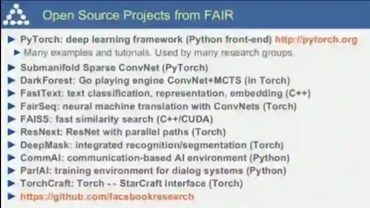诸多的用促成了FAIR的诸多开源项目(Lecun说,这里大多数项目自己没有参与,他只是在说别人的研究工作);