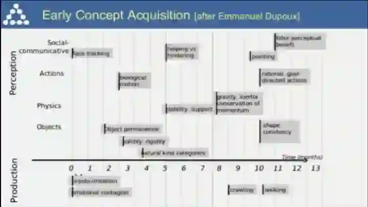从认知科学的角度,人类在婴儿时期学习到各种概念的时间表;