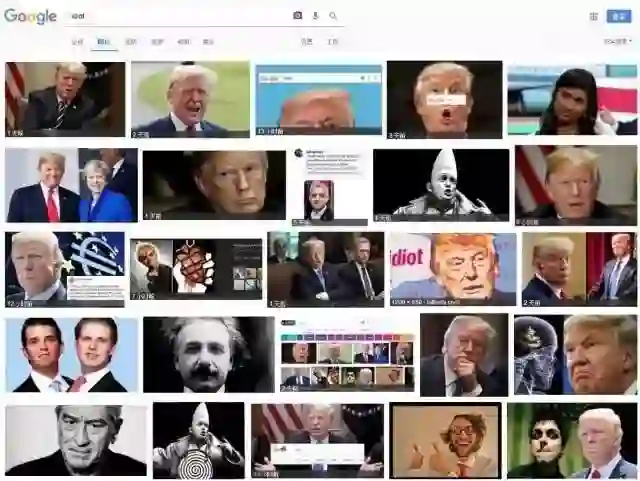 当年年底,谷歌卷入一场「白痴」风波:有人发现,在谷歌上搜索「idiot」(白痴)一词时,出现的图片有80%是特朗普的。